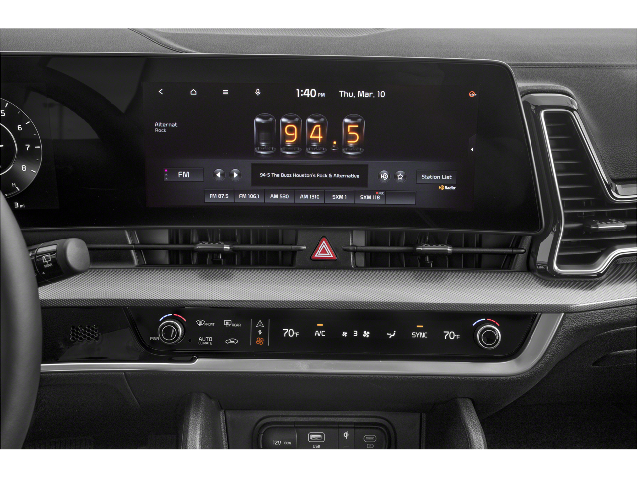 - Radio: AM/FM/HD Audio System -inc: 12.3" touchscreen w/navigation, 400 W w/HALOsonic harman/kardon sound system, 8 speakers including subwoofer, wired Apple Carplay and Android Auto, UVO telematics, voice recognition, SiriusXM, steering wheel mounted audio controls and Bluetooth® phone and streaming audio