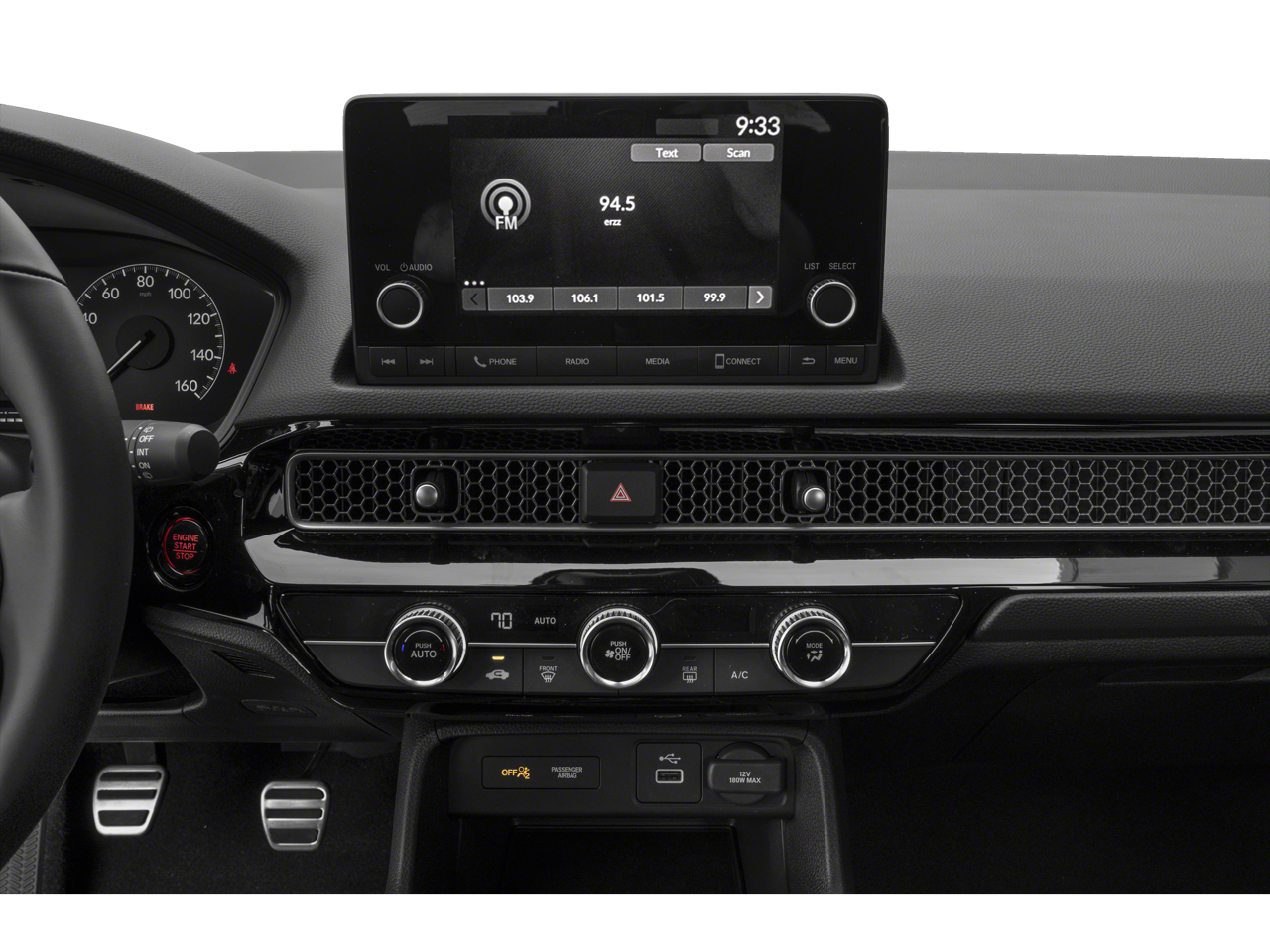 - Radio: 180-Watt Audio System -inc: 8 speakers, 7" color touchscreen, Bluetooth HandsFreeLink and streaming audio, Radio Data System (RDS), Speed-Sensitive Volume Compensation (SVC), HondaLink, SMS text message function (Your wireless carrier's rate plans apply, State or local laws may limit use of texting feature.), Apple CarPlay and Android Auto compatibility and 2.5-amp USB smartphone/audio interface port in front console