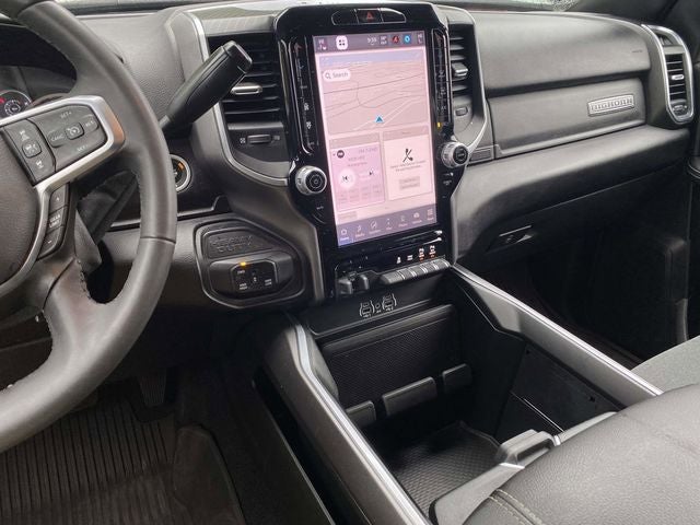 Beyond the impressive list of features, this Big Horn model also boasts a bold and aggressive exterior. The gloss black grille, black exterior badging, and 20-inch black painted aluminum wheels give this truck a commanding presence on the road. The MOPAR deployable bed step and clearance lamps add both functionality and style.